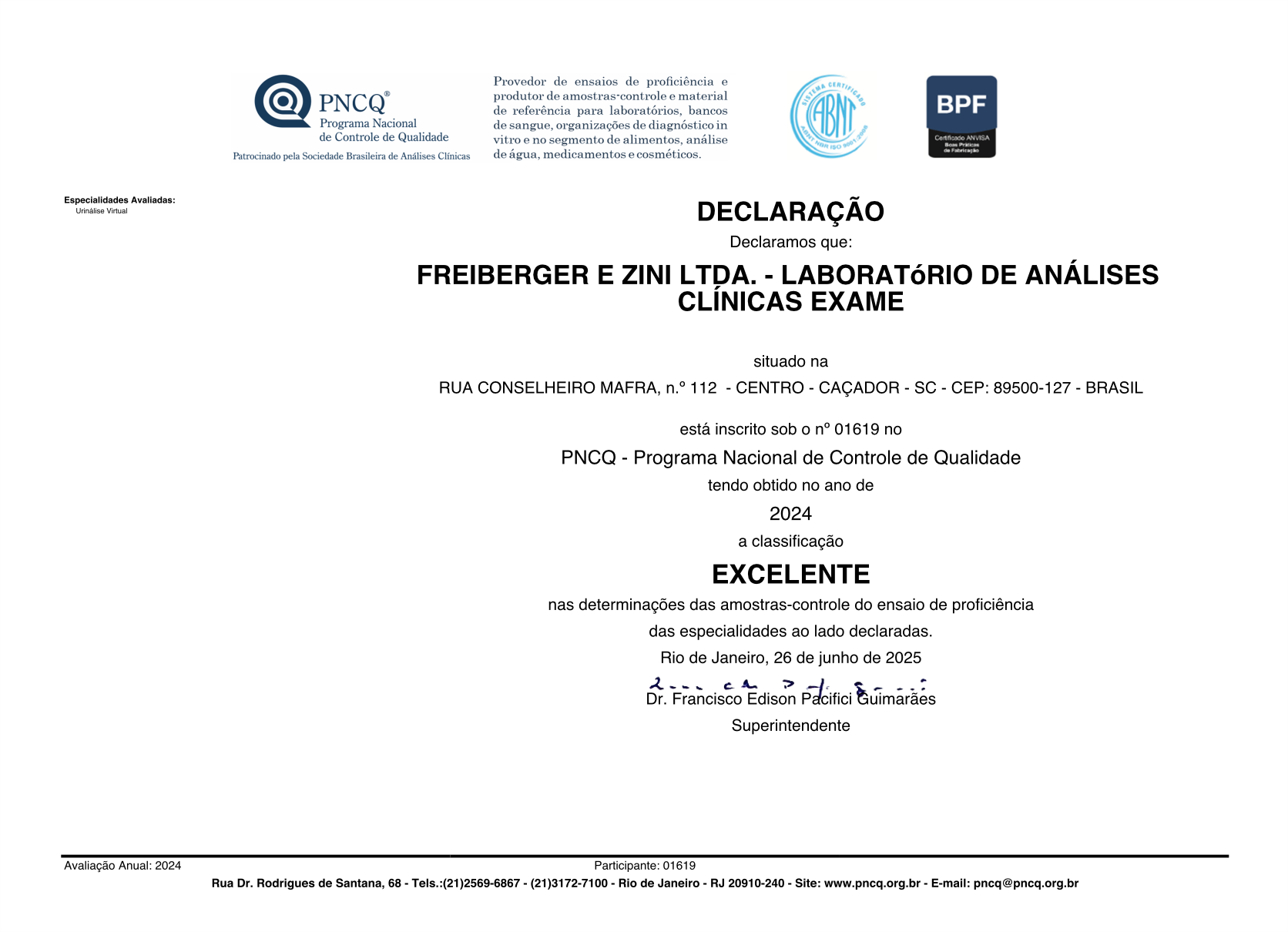 O Laboratório Exame conta com várias certificações de serviço e qualidade.